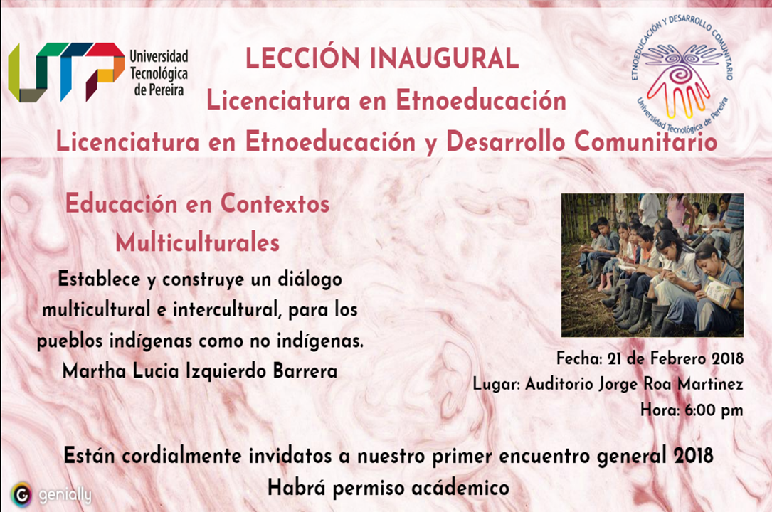El 16 de septiembre de 6:00pm a 8:00pm se realizará la Lección Inaugural de la Licenciatura en Etnoeducación a cargo de la profesora Elizabeth Castillo.
