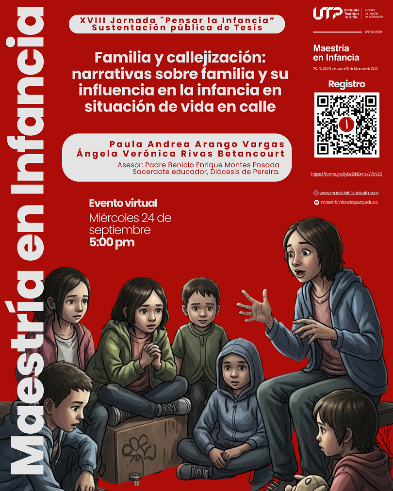 Esta tesis, presentada por las aspirantes a Magister en Infancia, Paula Andrea Arango Vargas y Ángela Verónica Rivas Betancourt,profundiza en las experiencias de adultos que vivieron su infancia en situación de calle en la ciudad de Pereira.A través de entrevistas narrativas, las autoras interpretan las concepciones de familia y su influencia en estas trayectorias de vida,destacando cómo los vínculos familiares actúan como factores protectores o de riesgo y la importancia de las redes de apoyo.
